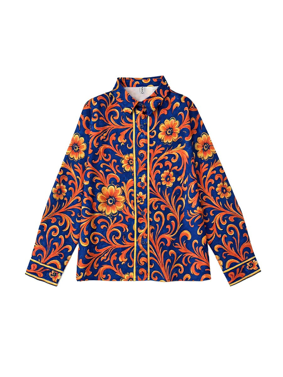 Artistic florals meet tailored polish in the Arlena Floral Buttoned Lapel Blouse. Designed with a refined lapel neckline and classic button-front closure, this long-sleeve blouse blends everyday elegance with modern versatility. The vibrant blue floral print adds visual interest while maintaining a sophisticated urban appeal.