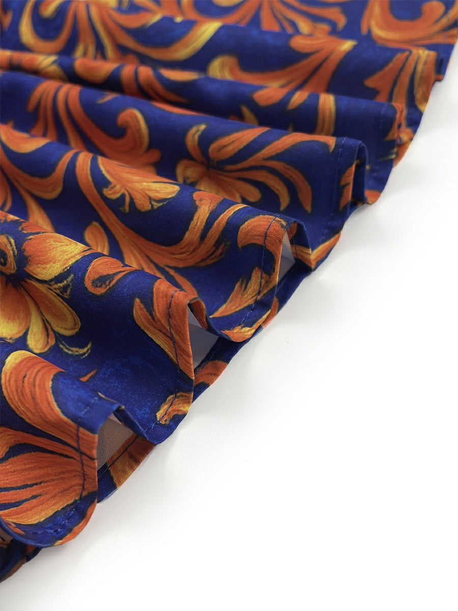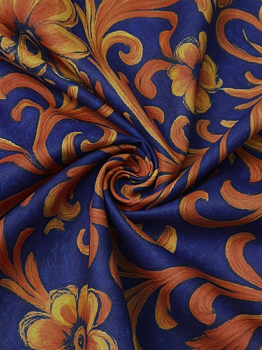 • All-over floral print in rich blue tones
