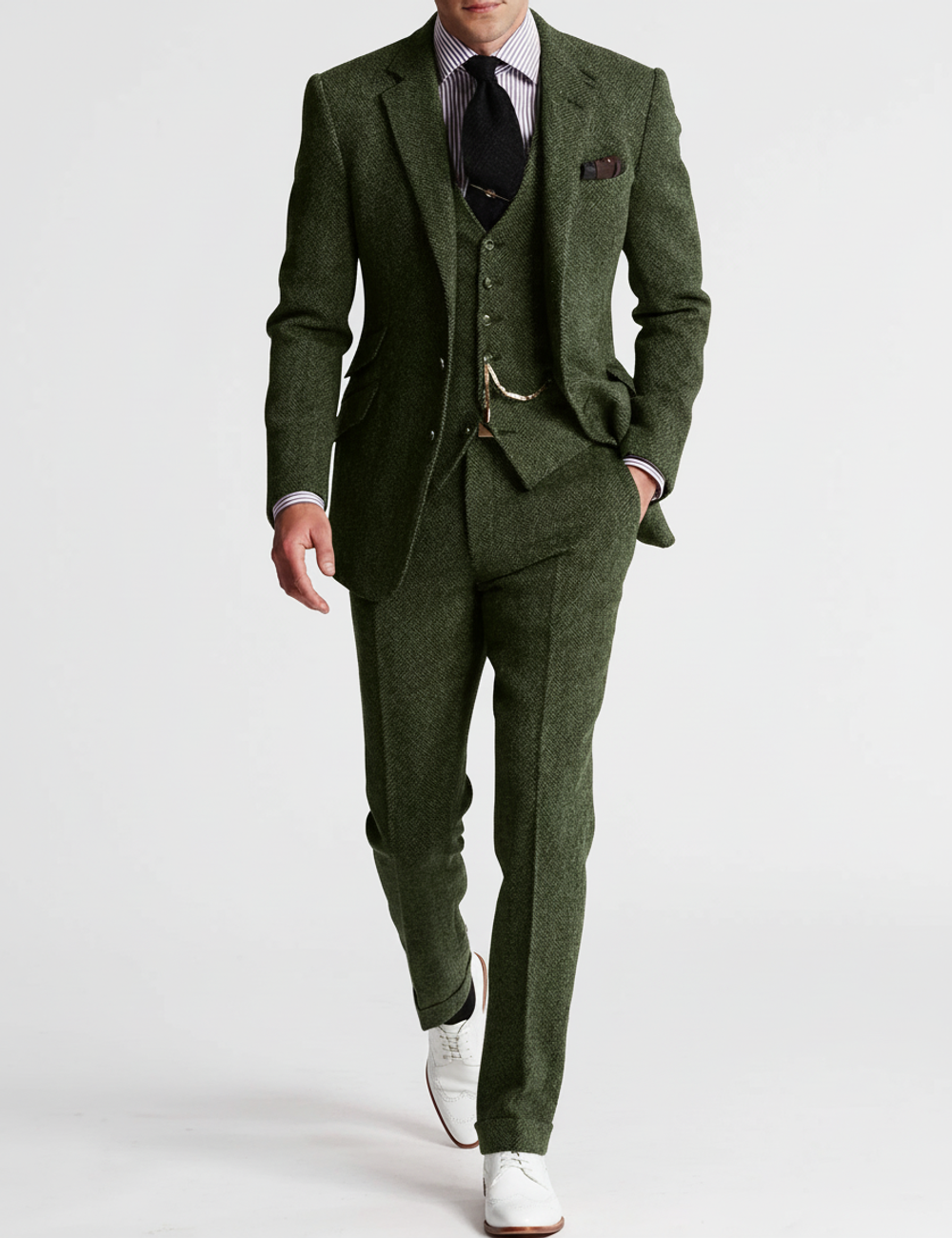 Orion is a slim fit three-piece suit for men designed for formal occasions where a sharp and polished appearance matters. The single-breasted jacket features a classic notch lapel that creates a balanced and timeless look, while the matching waistcoat adds structure and refinement. Paired with flat front trousers, this suit offers a streamlined silhouette that feels modern yet appropriate for traditional settings. Suitable for weddings, business functions, and special events, Orion brings together style and versatility in one coordinated ensemble.